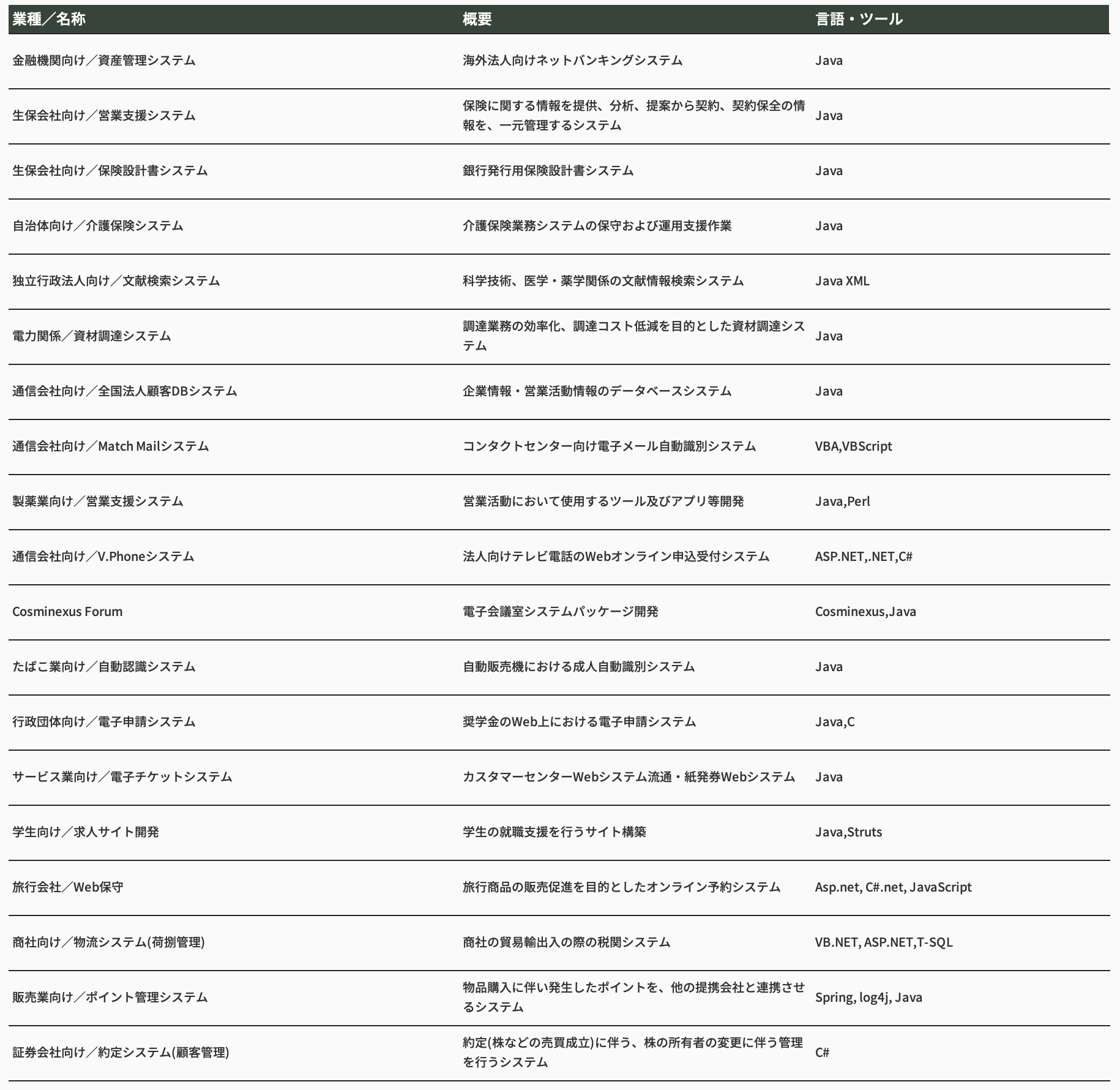 Webシステム主要開発実績