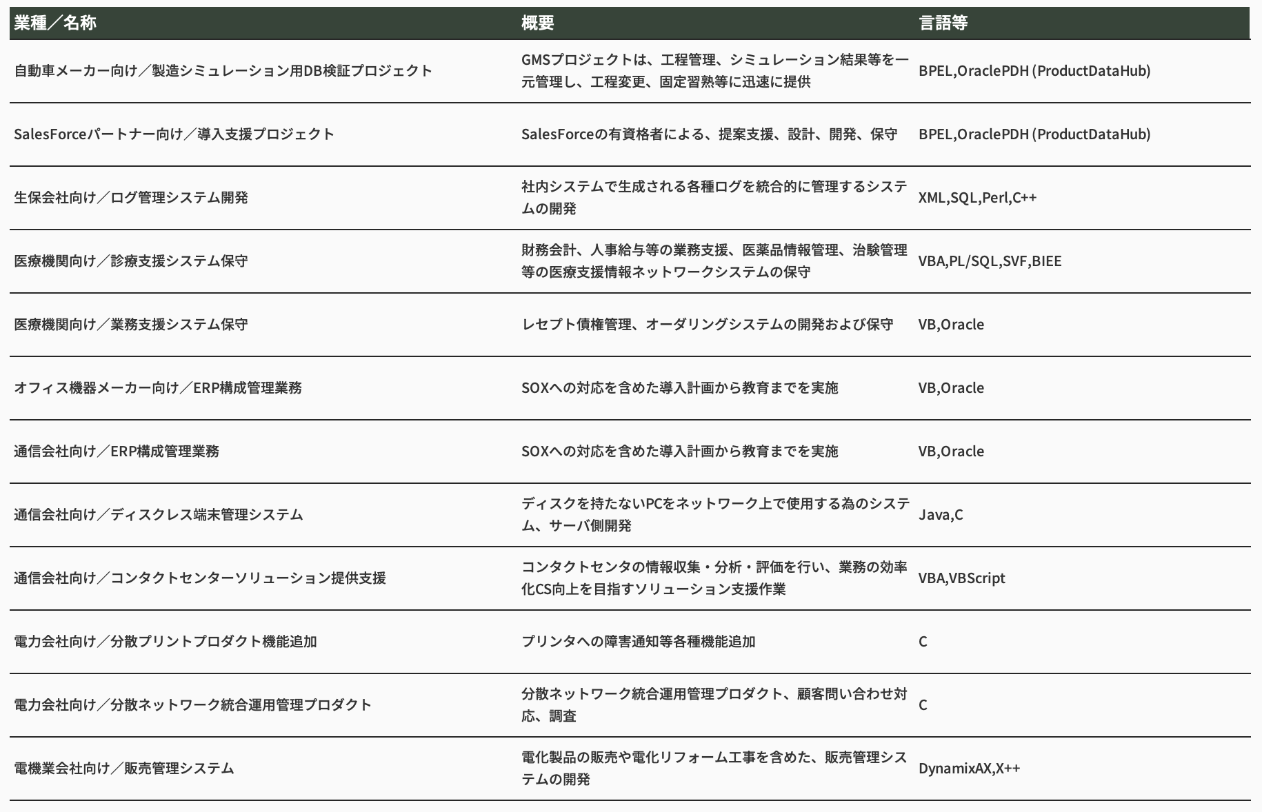その他開発実績 (SOA/Business Intelligence/J-SOX含む)